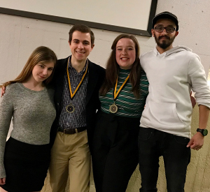 Alexandre Silberman, a second-year student from Burlington, VT, and Victoria Young, a first-year student from Winnipeg, MB, represented 麻豆社区 as debaters at the event, while Sayan Chatterjee, a fourth-year student from New Delhi, and Jessie Cross, a first-year student from Middle Arm, NL, competed in the public speaking rounds where Cross placed in the top six.